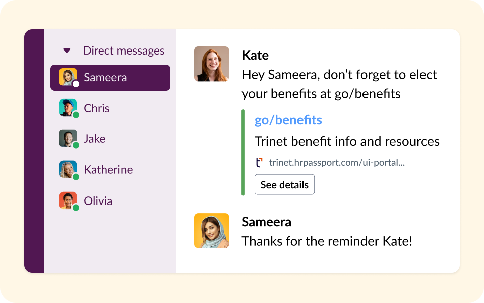 - Enjoy consistent go link functionality across Slack, whether in channels or private conversations.